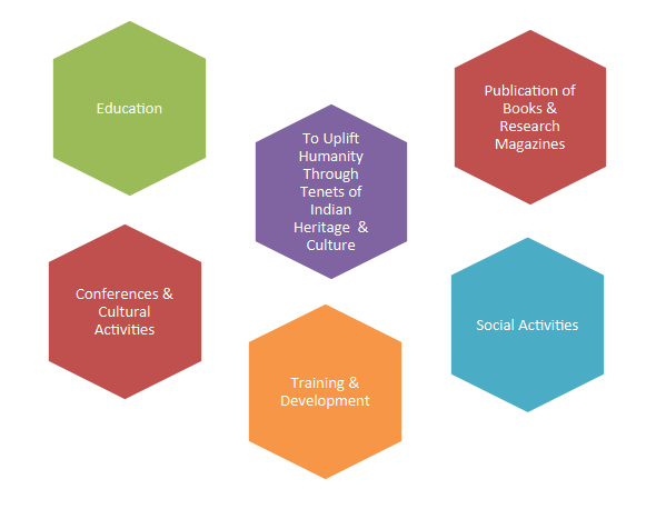 Over the years, the institute has created a niche for itself in education, as well as preservation and propagation of Indian culture and heritage by the area of History, Culture, Literature, Art, Music, Language, Religion, Philosophy, Spirituality and Science. It has been associated with various authors, scholars and dignitaries in these fields. It publishes various books and periodicals, and organizes seminars and literary meets with the sole objective of spreading the word of our rich cultural heritage and achievements in various fields of Indian knowledge systems all over the world.