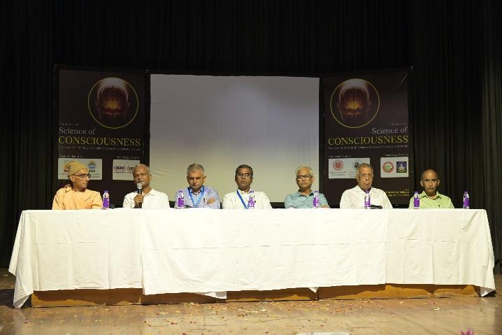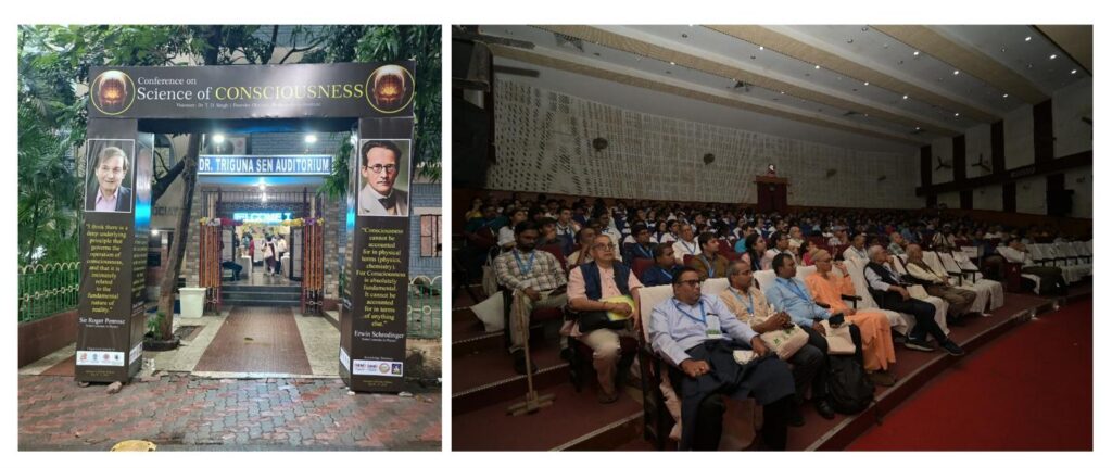 The two-day Science of Consciousness Conference, held on 10-11th August 2024, was a significant event organized jointly by the Bhaktivedanta Institute and Bharatiya Vidya Mandir as part of Golden Jubilee celebrations of the Bhaktivedanta Institute, Kolkata. Hosted at Dr. Triguna Sen Auditorium in Jadavpur University, Kolkata, the conference drew over 300 delegates and guests from premier institutions like IITs, IISERS, AIIMS, and other leading universities and colleges across India, filling the auditorium to capacity. The venue’s ambience is enhanced by the addition of the posters on consciousness, featuring the views of the founding fathers of quantum mechanics and other renowned scientists as well as Scientist & Saint Dr. T. D. Singh, the conference visionary and Founder Director of Bhaktivedanta Institute, setting the stage for the conference. Some instances of such quotes are “Consciousness cannot be accounted for in physical terms. For consciousness is absolutely fundamental….”.